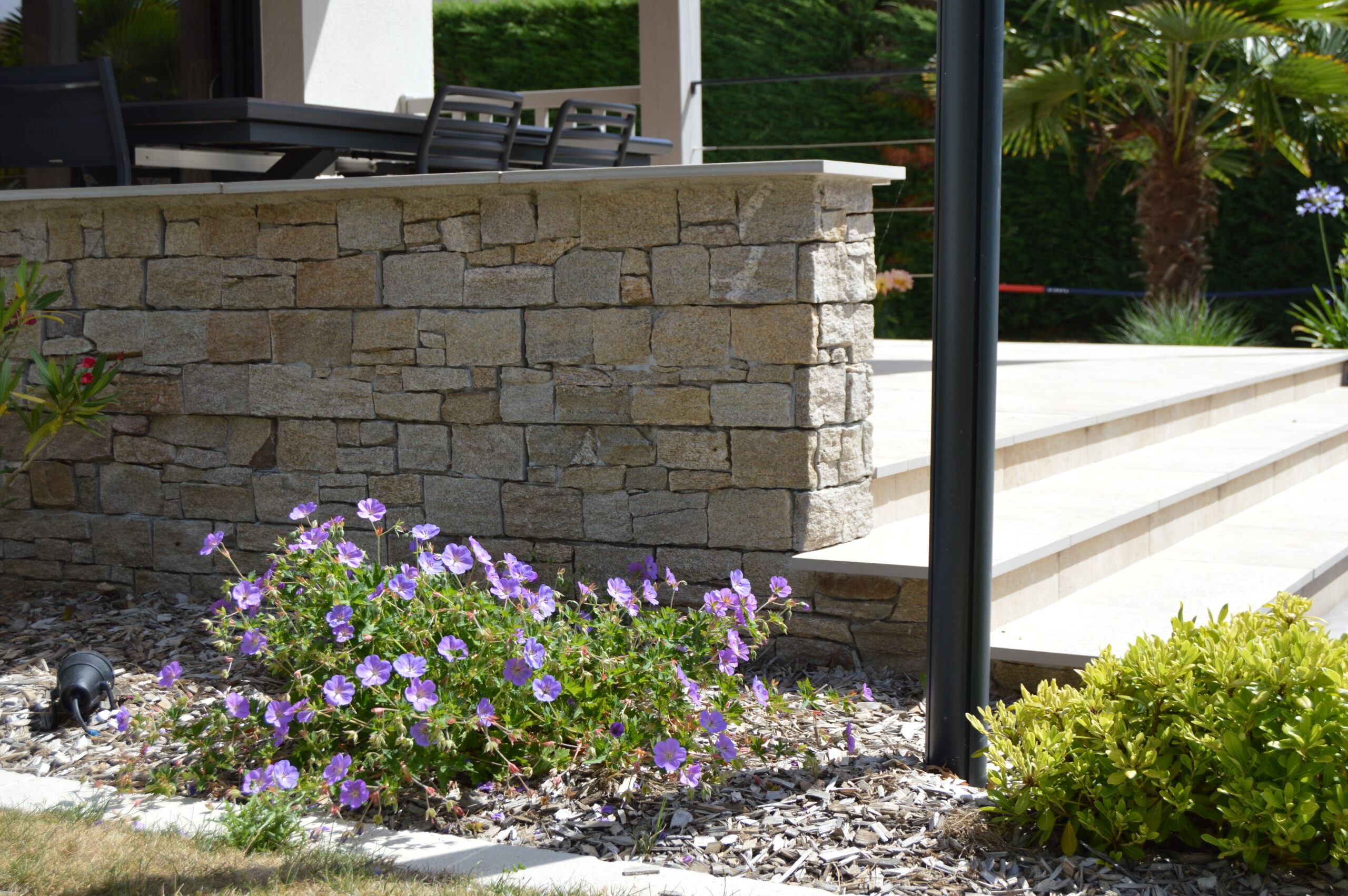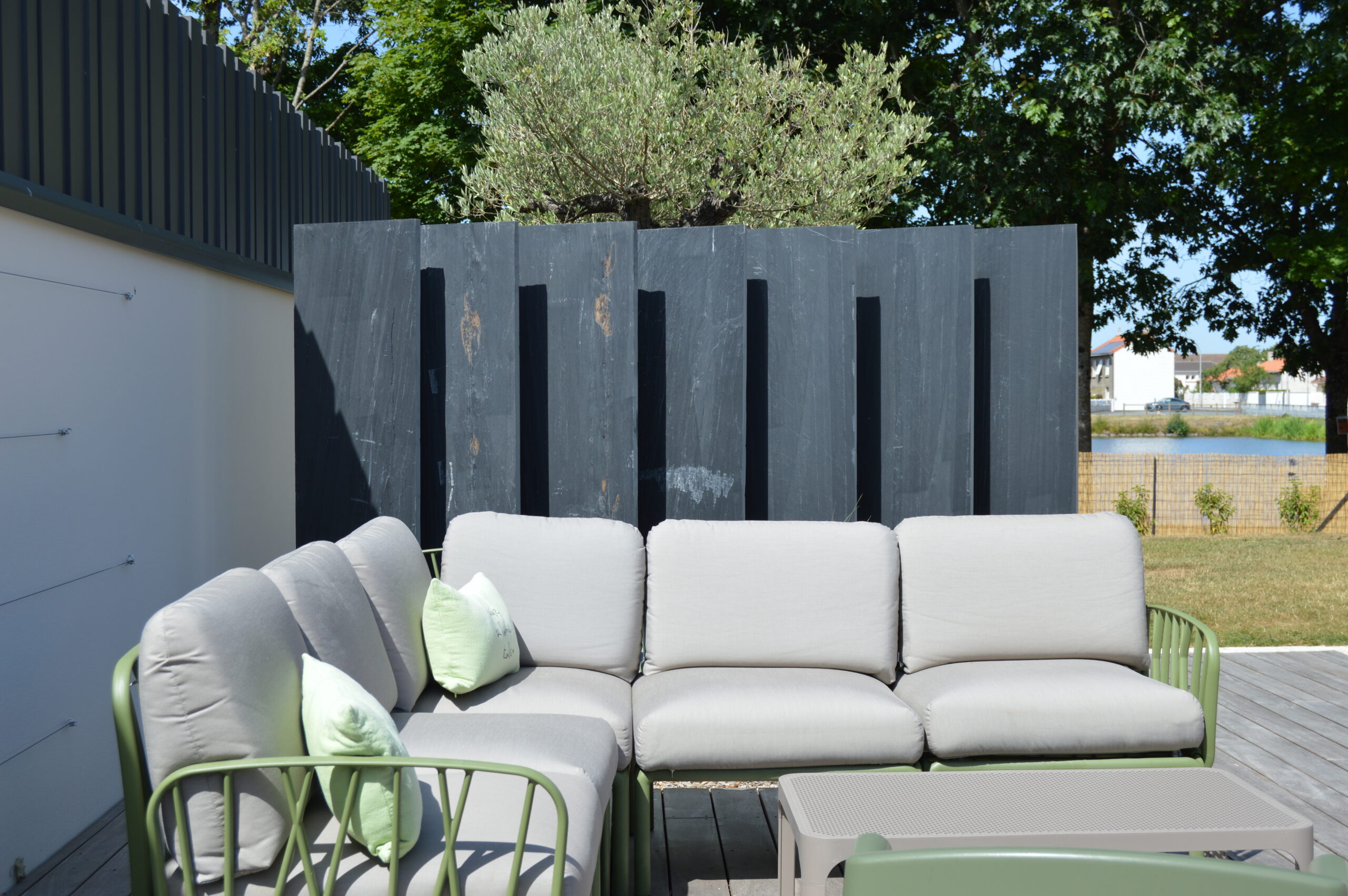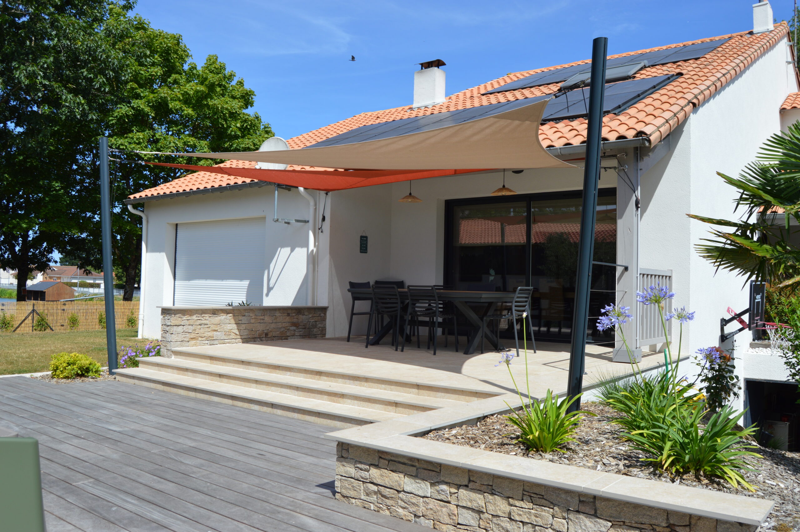 Intégration de terrasses et de brises vue dans ce jardin auparavant peu exploité.